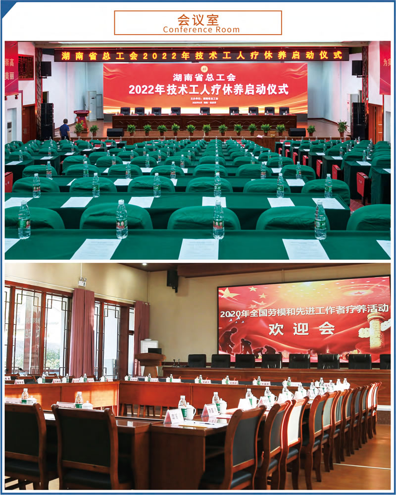 這里設施完備,環(huán)境優(yōu)美。占地70余畝,建筑面積23000余平方米,由多座湘西民族風格的園林建筑群組成。院外依山傍水,院內(nèi)綠樹成蔭,環(huán)境優(yōu)美怡人,F(xiàn)有客房4棟,各類客房279間,中西餐廳可滿足500人同時就餐。大小多功能會議室、棋牌室、健身房、藍球場、羽毛球場等設施均有配備。