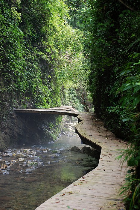 大峽谷中的飛瀑神泉比比皆是,一路游覽下來(lái),讓人目不暇接。峽谷里植被繁茂,空氣清新,涼爽舒適,溪水上彌漫著一層薄霧,宛如來(lái)到世外桃源,讓人煩惱頓消。 張家界大峽谷峽谷間是一條清幽的小溪,沿溪邊是用木板搭建的游道, 張家界大峽谷峽谷內(nèi)不僅有傳統(tǒng)的秀美自然風(fēng)光,還云集有三朝數(shù)代的歷史人文景觀(guān),如記錄李自成與吳三桂慘烈決戰(zhàn)的“千人墳”古戰(zhàn)場(chǎng),反映湘西歷史特色的土匪洞及見(jiàn)證解放初期湘西人民靠天勞作在絕壁間挖鑿的“南方紅旗渠”等。