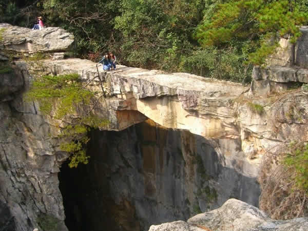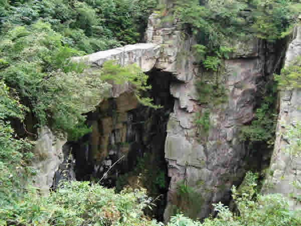 仙人橋,長26米,寬1.6米,厚1米,高67米,飛架在兩處懸崖絕壁之間,鬼斧神工,驚險而奇特。