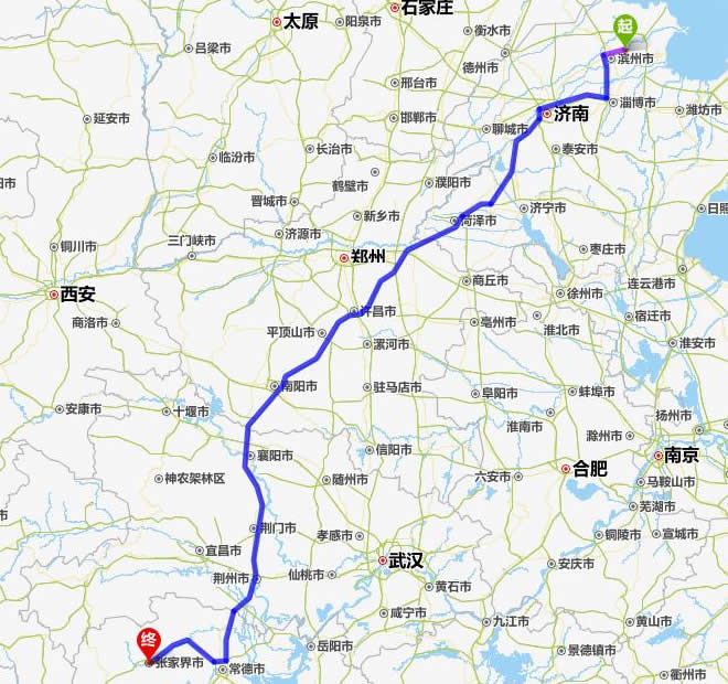 利津縣去張家界自駕車(chē)自助游線路圖全程高速):