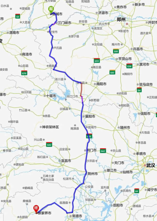 運城去張家界自駕車自助游線路圖全程高速):