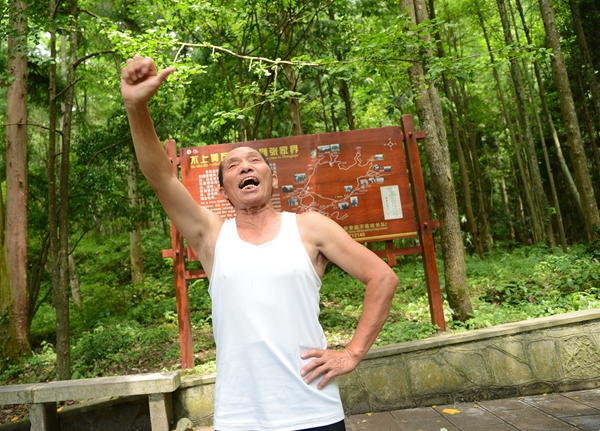 二是老人有個強健硬朗的身板。十多年前,趙如秋查出患有高血壓和腎結(jié)石,他就堅持每天在景區(qū)爬山鍛煉身體,結(jié)果還真的有效,不僅腎結(jié)石消除了,高血壓有所緩解,身體也結(jié)實得很。如今趙如秋老人雖然68了,但說話中氣十足,走路健步如飛,還能挑上150斤擔(dān)子徒步登上鷂子寨、黃石寨,沿路還能唱山歌。